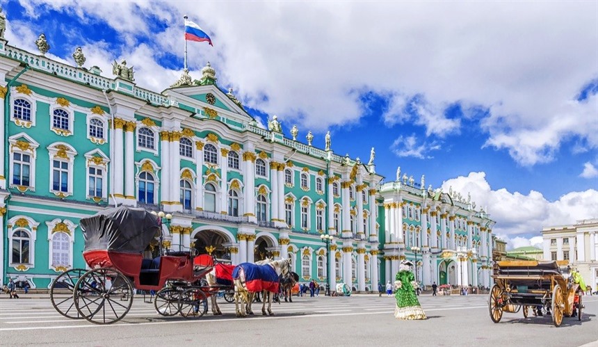 Horse-drawn carriages await in Palace Square, St Petersburg. © Shutterstock/dimbar76