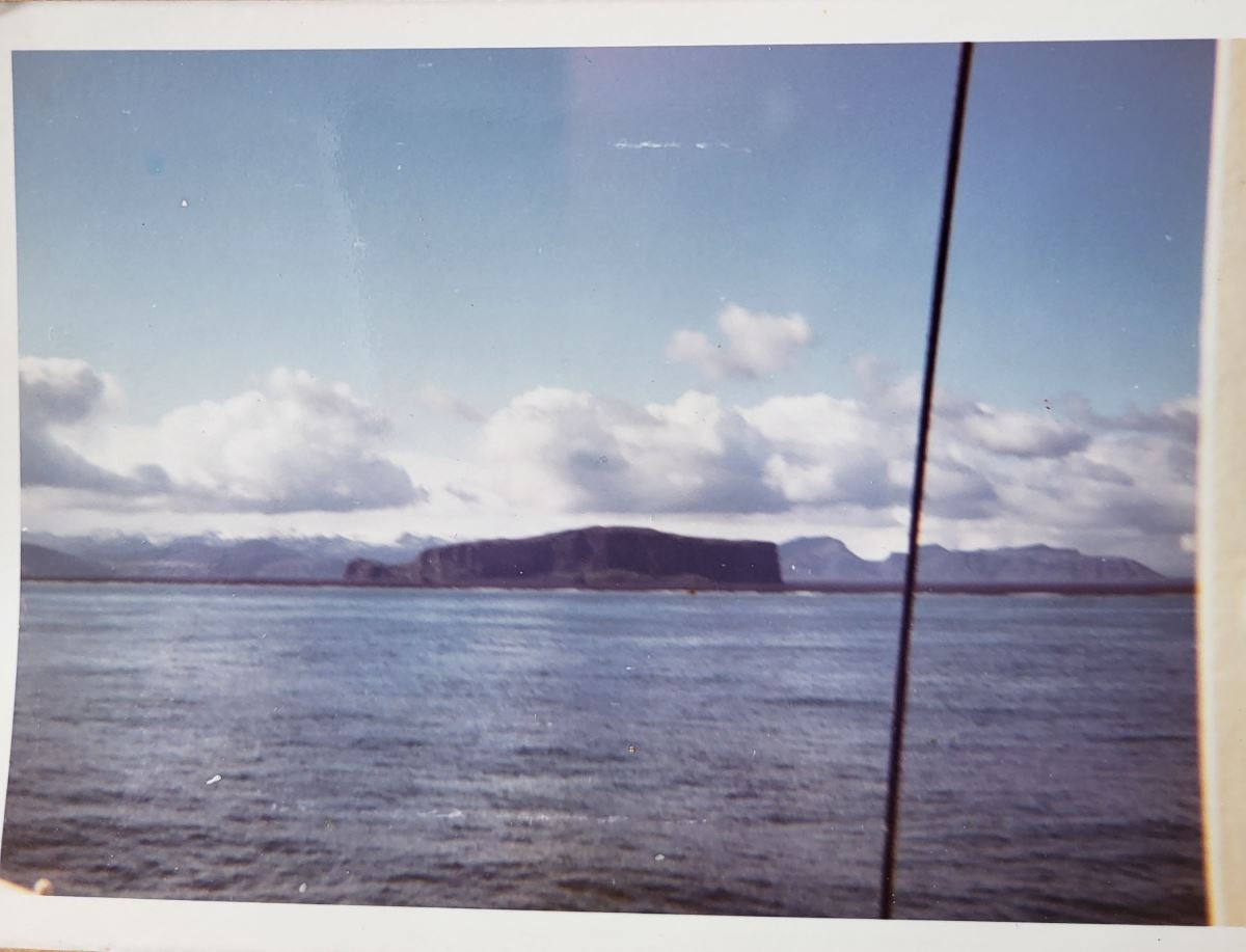 "Well, it's no one's idea of a high-resolution photo but then in 1973 this is what was possible with a Kodak Instamatic, sailing along the southern coast, getting my first glimpse of Iceland. I was 19 and having "my year off" as we called gap years then.
