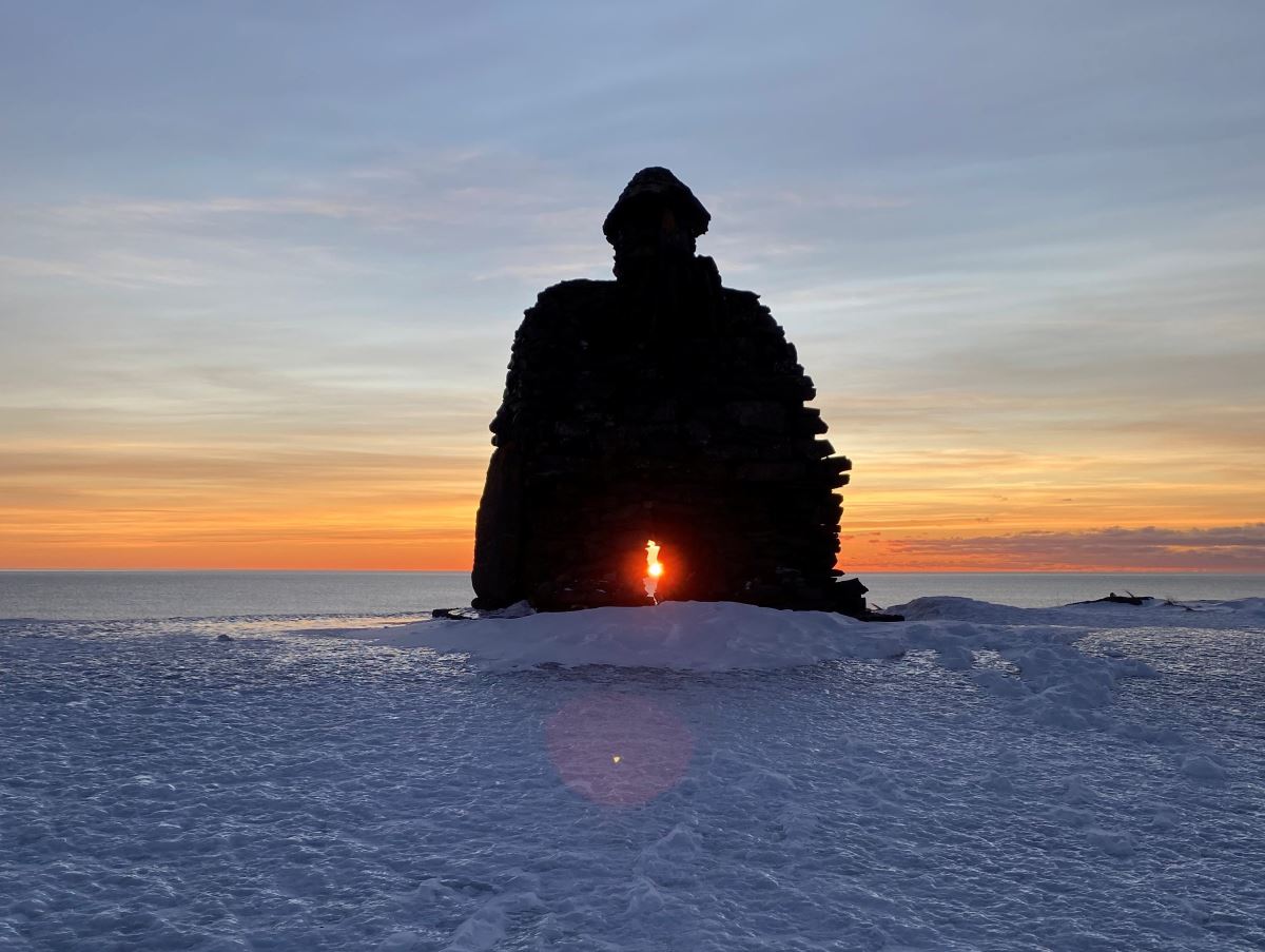 "This photo was taken just after sunrise 11.00 am on January 1st 2025. A magical moment at the start of a new year. It’s the statue of Bardur at Arnarstapi right out the end of snaefellsnes peninsula.