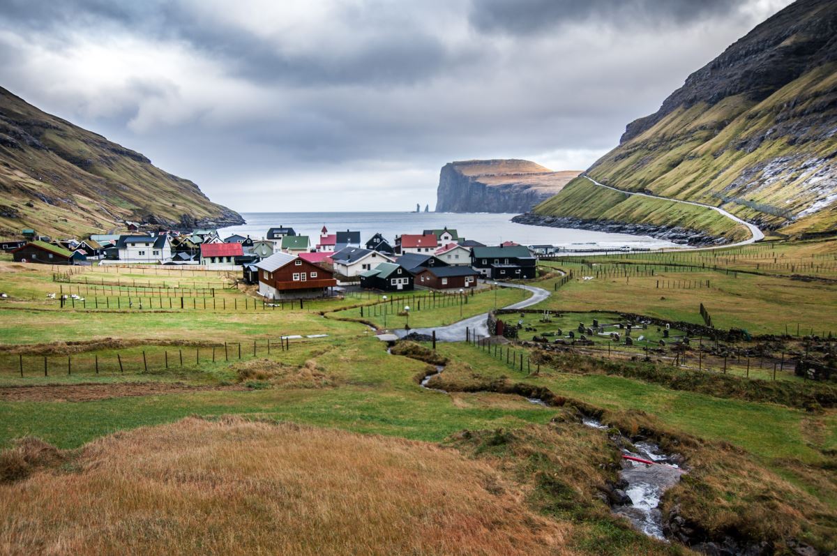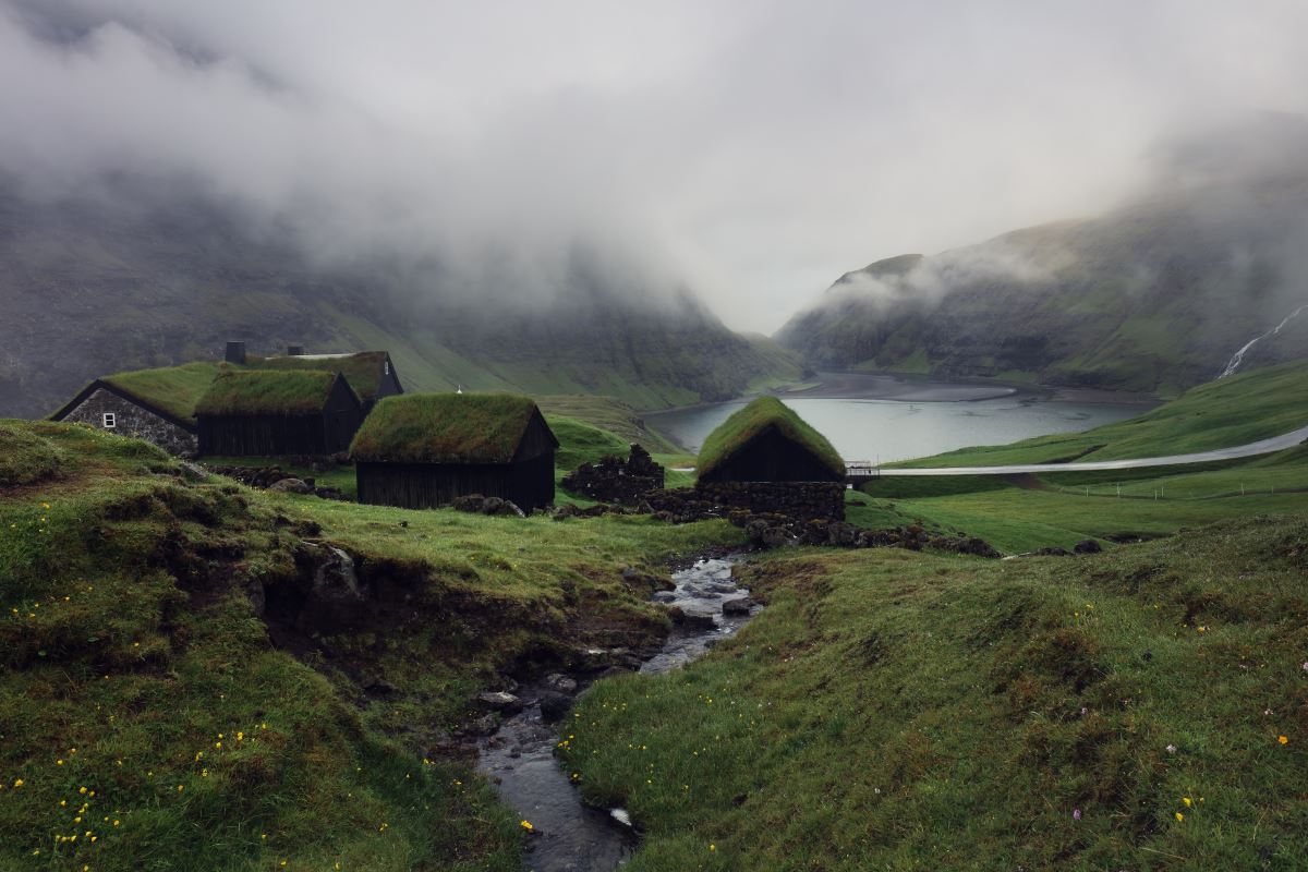 Gásadalur, once the most isolated settlement on the islands, is framed by the Múlafossur waterfall, which plunges directly into the ocean. Saksun sits at the end of a narrow mountain road, opening onto a natural amphitheatre of houses, cliffs, and a tidal lagoon. Gjógv is carved by a dramatic sea-filled gorge that once served as a natural harbour, now one of the most striking geological features in the Faroes.
