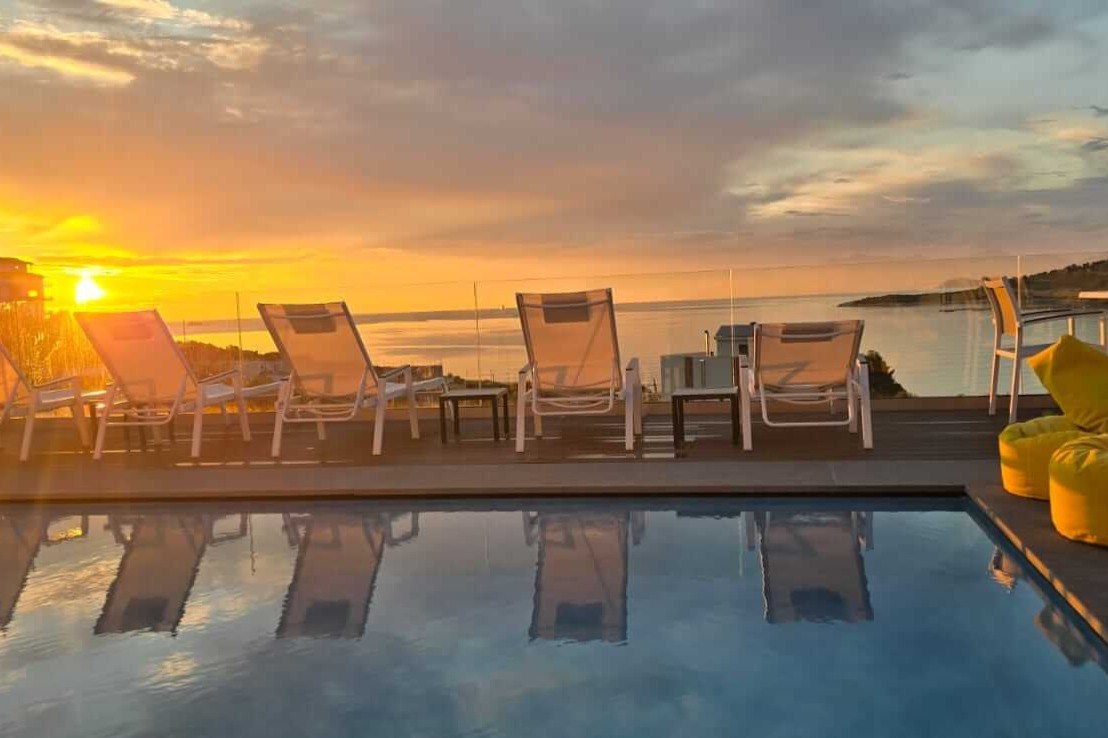 Guests can unwind beside the hotel’s outdoor rooftop swimming pool, a calm oasis framed by loungers and greenery, or take a leisurely stroll to the nearby sandy coves that have made Ksamil one of Albania’s most sought-after coastal destinations. Porta Hotel offers a relaxed, stylish retreat for couples, families and friends exploring the scenic southern Riviera.