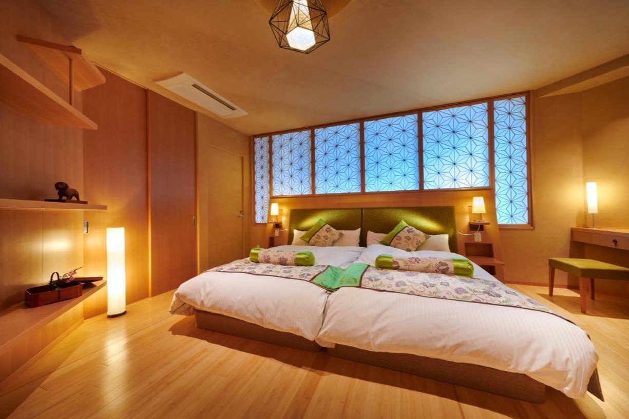 The ryokan’s guest rooms combine classical Japanese aesthetics with a serene ambience, equipped with flat-screen TVs, electric kettles, personal safes, and en suite bathrooms with bathtubs and free toiletries. For relaxation, the ryokan offers an indoor hot spring bath with special toiletries and cold drinking water.