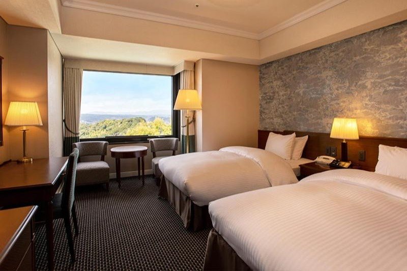 The hotel’s facilities include an open-air natural hot spring bath, spa centre with massage treatments, mist sauna and flower bath, karaoke, and shopping arcade. Dining options include seven restaurants, including Le Ciel with city and volcano views, Japanese and Chinese speciality restaurants, and an in-house bakery and brewery.