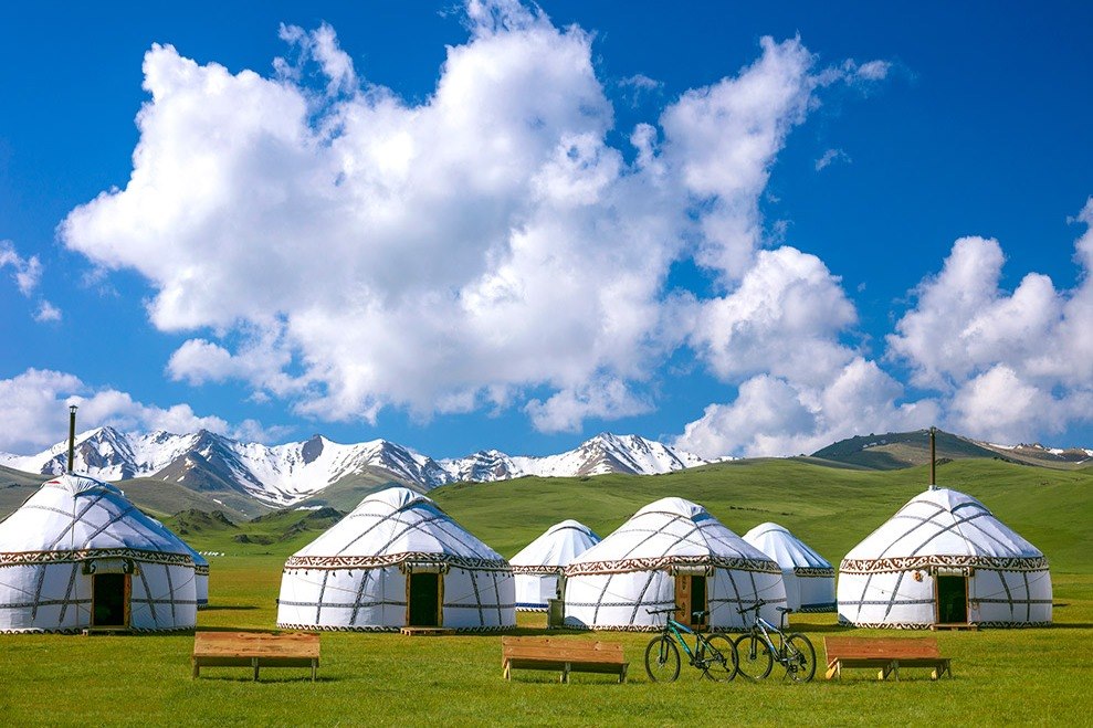Set at an altitude of 3,016 metres, this luxury yurt camp features 15 beautifully designed yurts combining traditional Kazakh craftsmanship with modern comfort. Each yurt features wooden floors, thick mattresses with crisp white linen, a warm stove surrounded by stones for insulation, and colourful ethnic décor. Guests will also find a washbasin, lighting, sockets, a table and chairs, and secure door locks. A welcome drink and even champagne with glasses await upon arrival. Each yurt accommodates up to four guests, though smaller private setups can be arranged on request. The camp’s purpose-built shower and toilet block is equipped with three modern showers and four flushing toilets.