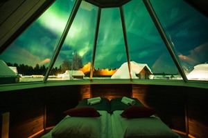In the embrace of two remote lakes in the heart of an unspoiled Lappish Forest, Apukka Glass Igloos Resort is an exceptional place to search for the Northern Lights and discover abundant activities in the heart of nature. This seemingly isolated resort is just ten minutes from Rovaniemi, the capital of Lapland in northern Finland, where guests can experience cultural tours, visit coffee shops and taste local cuisine at authentic restaurants.