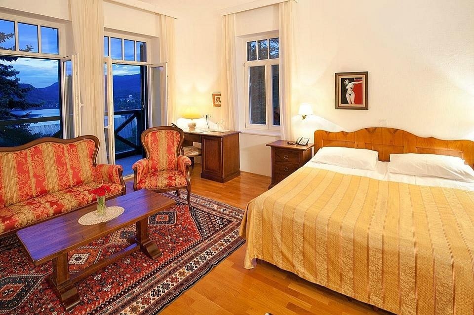 The hotel features individually styled rooms and suites, many with balconies or terraces overlooking Lake Bled. Rooms blend classic décor with modern comforts and include free Wi-Fi, flat-screen TVs, tea and coffee-making facilities, and comfortable furnishings. Lake-view rooms are particularly sought after for their panoramic outlooks.