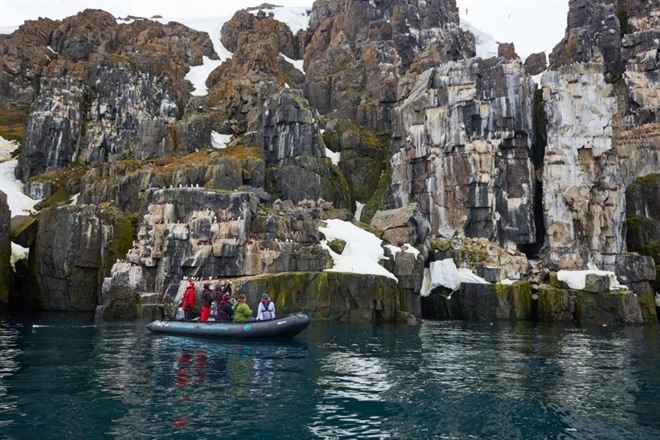 Return to Isfjorden and sail into Ymerbukta, a striking bay framed by jagged mountains. Step ashore for a walk across the tundra, where Arctic plants flourish and migratory birds may be spotted depending on the season. Continue northeast toward Ekmanfjorden, where glaciers spill into the sea and dramatic landscapes unfold at every turn. In Gipsvika, venture close to the cliff of Templet, a geological marvel of eroded sedimentary rock dating back nearly 290 million years. The combination of sweeping tundra, towering peaks, and abundant wildlife makes this day a true Arctic immersion. (B,L,D)