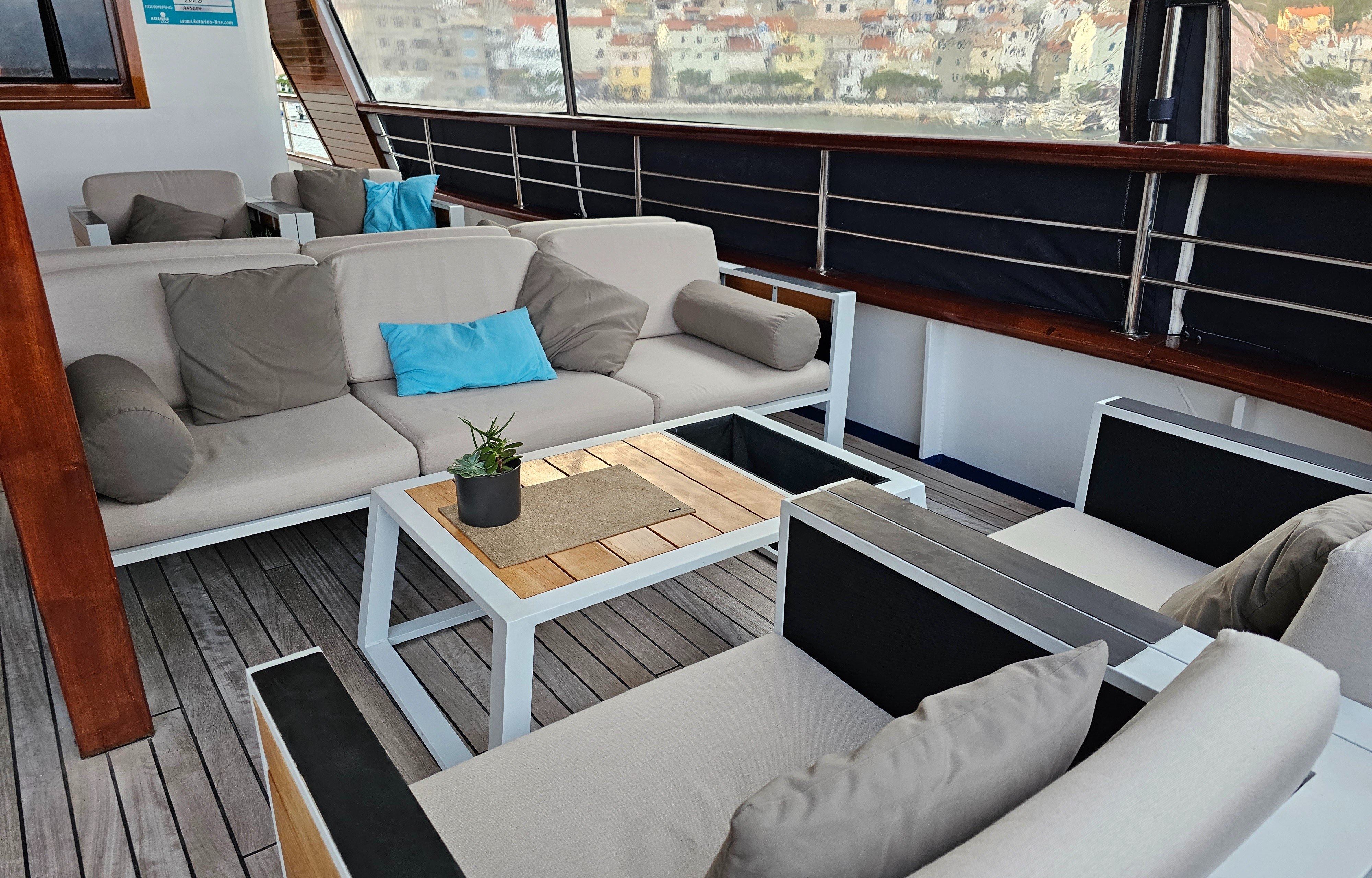 Accommodation aboard the MV Aquamarine is designed for both relaxation and style. Guests can choose from 19 elegantly furnished cabins, including 10 upper-deck cabins with private balconies for uninterrupted views of the coastline, while 9 lower-deck cabins with porthole windows let in ample natural light. Each cabin is ensuite, air-conditioned, and features complimentary WiFi, making it a perfect retreat during your journey along the Adriatic coast.