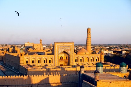 Spend the day touring the small city of Khiva. Visit Ichan-Kala, Mohammed-Amin Khan Madrassah and Minaret, Kunya Ark, Pakhlavan Mahmud Complex, Islam Khodja Madrassah and Minaret, Jumma Mosque, Tash Hauli Allakuli-Khan Palace and the Bazaar. (B)
