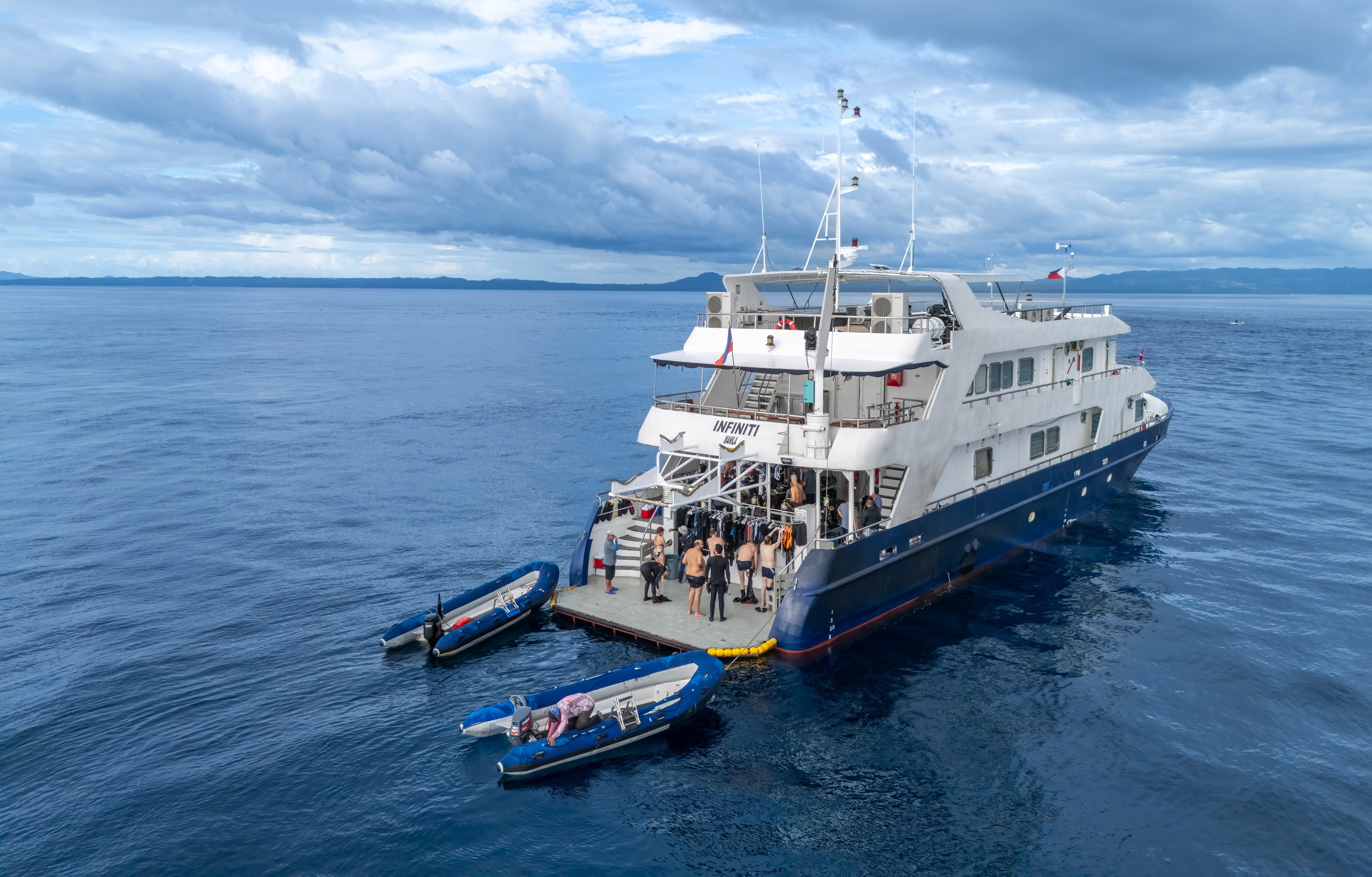 Atlantis Infiniti is a purpose-built 39-metre liveaboard dive yacht operating from Atlantis Dumaguete Resort in Dauin, Negros Oriental, Philippines, with itineraries exploring the Visayas’ best dive sites. The vessel accommodates up to 25 guests across 11 cabins. All cabins are air-conditioned and feature en-suite bathrooms with shower, hairdryer and basic toiletries. Meals are freshly prepared onboard and served in the restaurant, with snacks and drinks available throughout the day. Complimentary beer, wine and local rum are included.